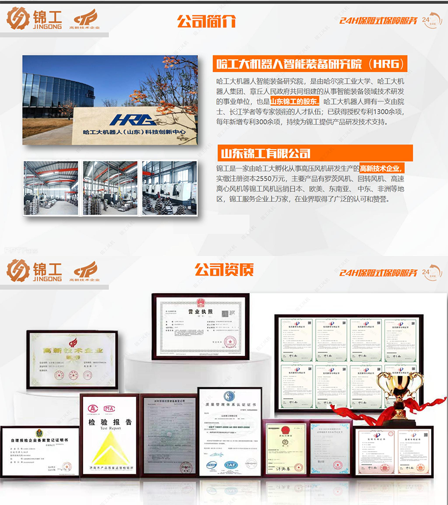 山東錦工有限公司是專業生產羅茨鼓風機、回轉式鼓風機、羅茨真空泵、三葉羅茨風機等機械設備的高新技術企業,注冊資本5000萬元,實繳資本2550萬元,位于有“鐵匠之鄉”之稱的山東省濟南市章丘區。近年來,錦工致力于新產品的研發,已獲得授權專利、軟著等知識產權20余項,新產品雙油箱羅茨鼓風機、水冷羅茨鼓風機、油驅羅茨鼓風機、低噪音羅茨鼓風機,贏得了市場好評和認可。此類產品已廣泛應用于電力、污水處理、環保、化工、鋼鐵、建材、農藥、制藥等行業。產品和服務遠銷全國各地及東南亞,深受客戶好評。 公司本著“以人為本,精益求精,合作雙贏,永續經營”的經營原則,堅持為客戶提供更高品質的產品及更優質的服務,竭誠歡迎海內外的朋友光臨惠顧,攜手共創美好明天!