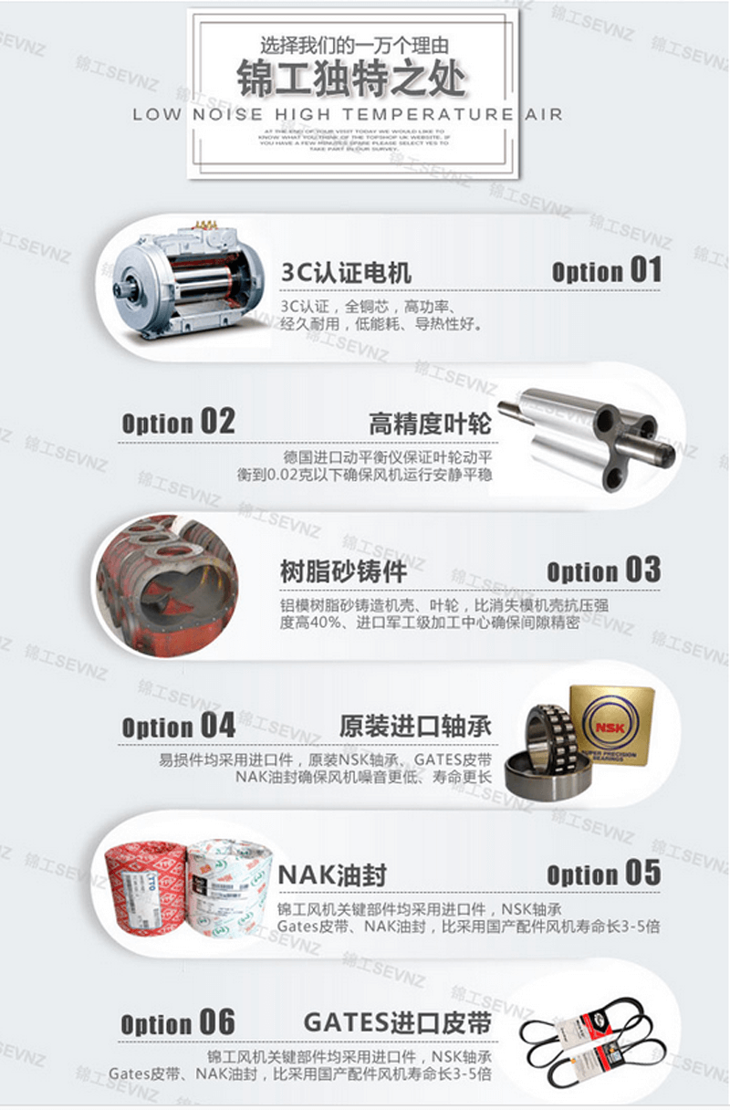 8、風機齒輪采用20CrMnTi經滲碳處理,磨削加工,精度達五級,齒面更耐磨,能明顯降低齒輪噪音。